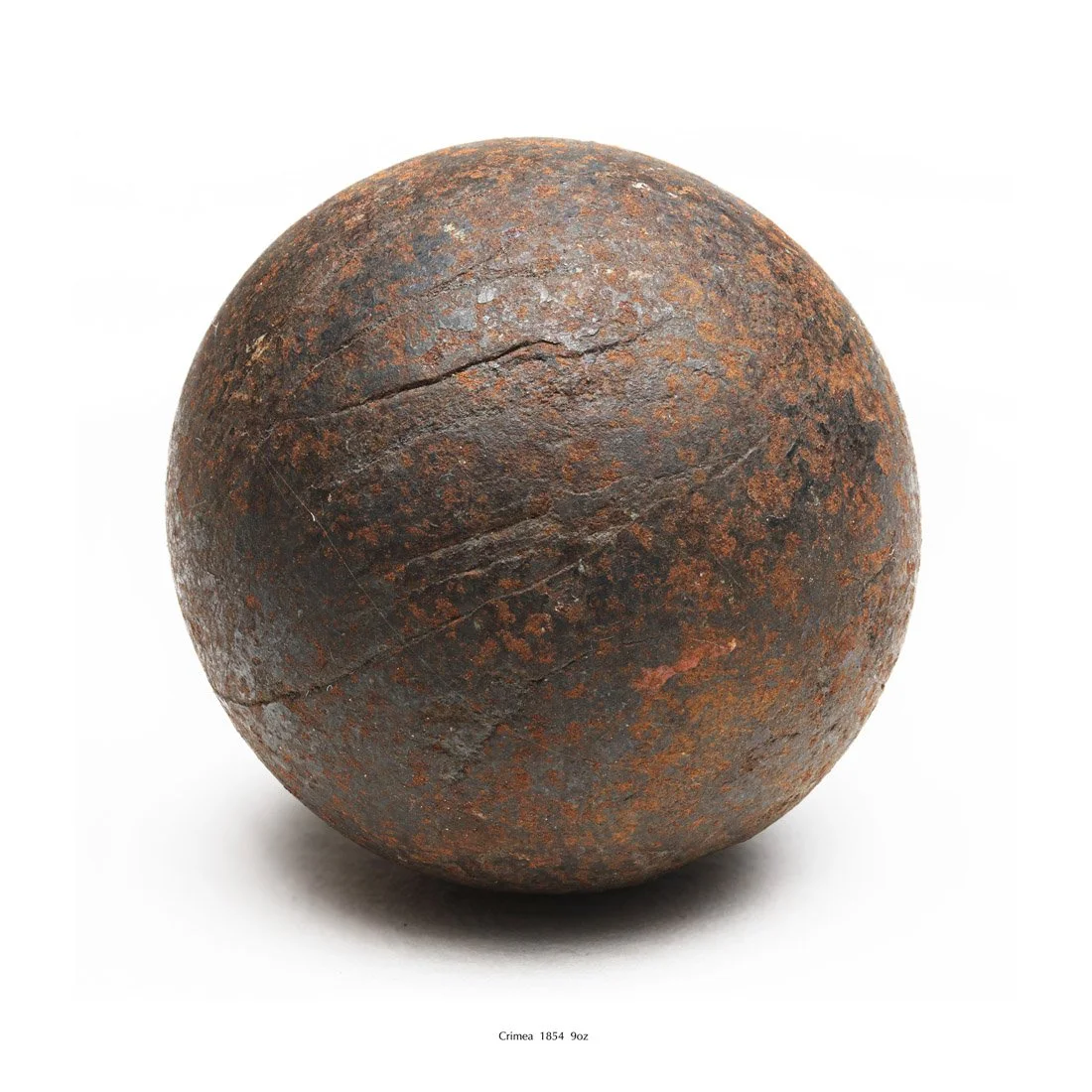 As weapons they were intended to take out whole columns of men as they bounced along the ground at speed, a single roundshot could pass through over 30 men. They were fired at a low angle to do this and had a range of under a kilometre. Their consistency, roundness and smoothness, important qualities for accuracy, was a leading scientific pursuit of the 18th and 19th Centuries. Soldiers were often offered bounty for recovering used shot for possible reuse or to prevent enemy reuse. The cannonballs are made of various iron alloys, Iron, Carbon, Silicon, Manganese and Phosphorus. Depending on how they were made and the environment in which they have aged they have all weathered differently, in detail they become visually and metallurgically landscapes of war, partly iron, partly battlefield.